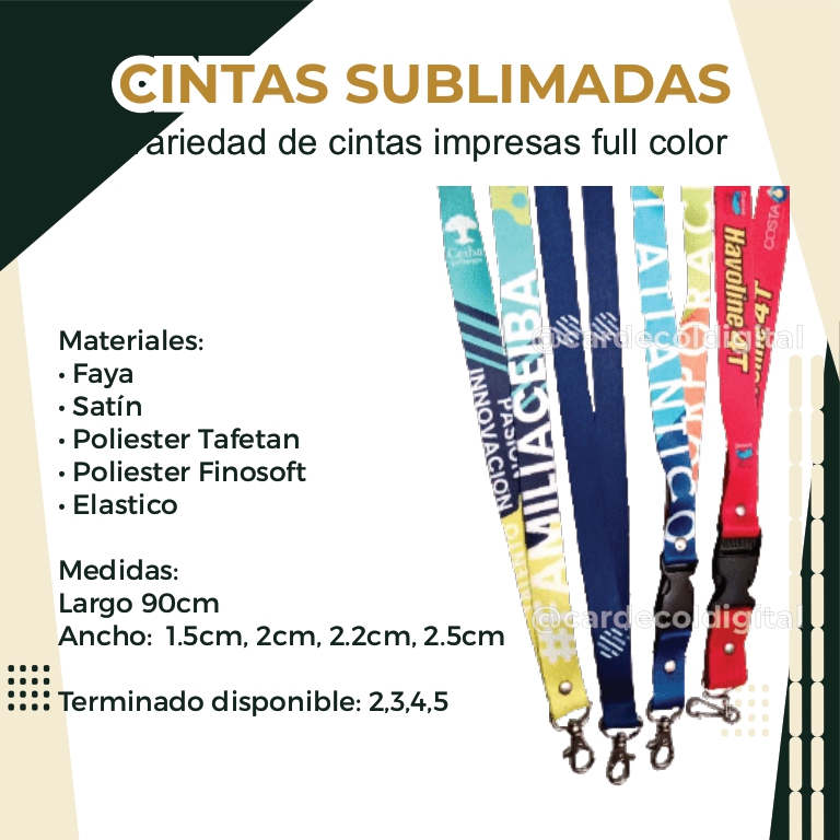 Cinta Satín, Poliéster o elástico sublimado full color, permite alta definición de imágenes y se puede personalizar. Ideal para proyectos personales o comerciales que exijan una mayor calidad.