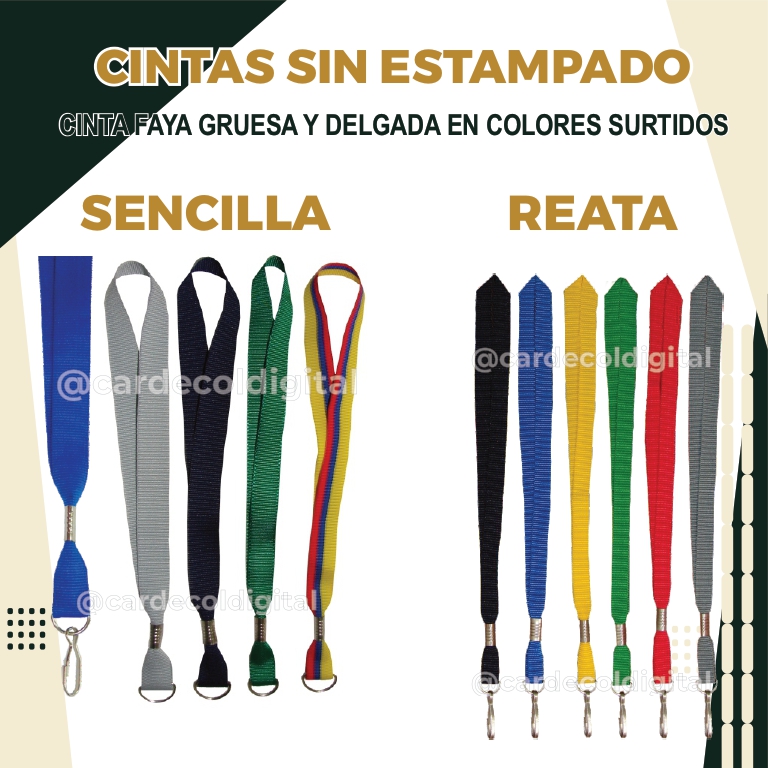 Las Reatas son porta carnet para usar en el cuello, debido a su material no son susceptibles de marcación. Están disponibles en colores básicos y son ideales en proyectos de carnetización de presupuesto moderado, o para usos temporales.