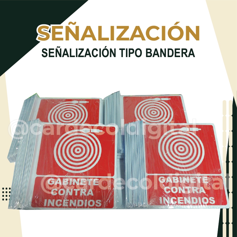 Señalización doble vista tipo bandera es ideal para colocarlos en pasillos y lugares que puedan verse en ambas direcciones para señalar un sitio de paso.
